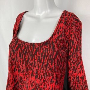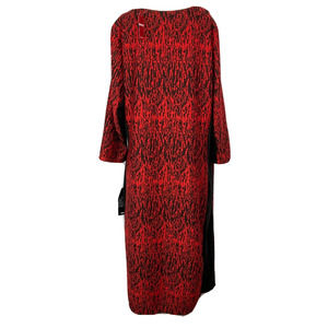 NWT Avenue Dress Womens Sz 18 20 Red Black Print Long Sleeve Sheath Midi Stretch