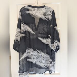 NWT Avenue Long Top Cover Up Black Boho Floral Semi Sheer Tunic Blouse Sz 14/16