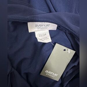NWT Avenue Studio Navy Blue Floral Sheer Top Tunic Sz 22 / 24 Overly Necklace