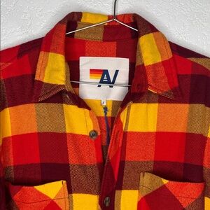 NWT Aviator Nation FLANNEL UNISEX WESTERN SHIRT - SURFY PLAID- Large Orange/Red