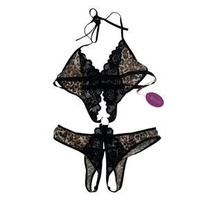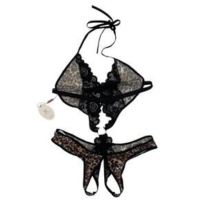 NWT AvidLove Lace Teddy Bodysuit - Deep V Halter - Sexy - Leopard Print - L