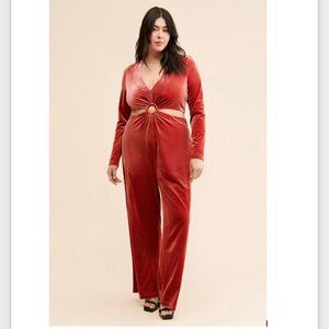NWT Awaylee X Free People Peekaboo Velvet Jumpsuit Women's 1X Cutout Red Orange