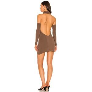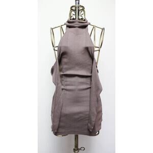 NWT Aya Muse Topaz Brown Ribbed Cold Shoulder Turtleneck Shirt Dress Size XS