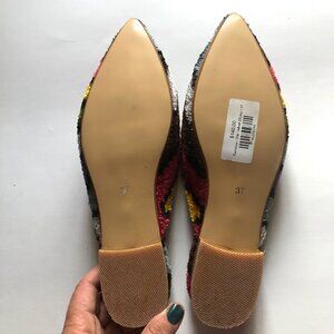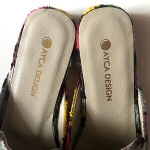 NWT Ayca designs silk velvet rainbow tapestry pointed toe mules