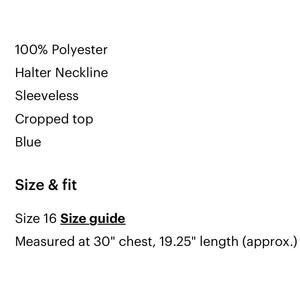 Elevate your wardrobe with this stylish Azazie crop top. The halter neckline and open back design add a touch of allure to your outfit, while the blue color and size 16 make it a versatile piece for any occasion. Made of polyester and sleeveless, this tank top is perfect for any season.