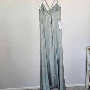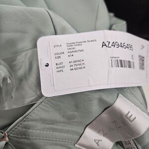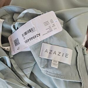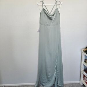 NWT Azazie Naomie Agave A-Line Cowl Neckline Side Slit Stretch Satin Dress, A14