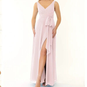 NWT Azazie Pearl Pink Bianca Chiffon Gown Size 6
