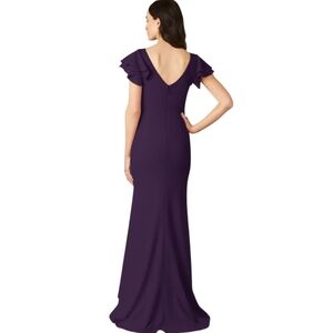 Brand new with tags, lined, back zipper, Plum #74, flutter sleeves, 95% polyester, 5% Spandex