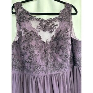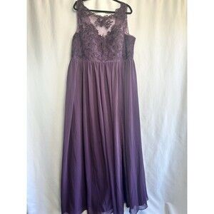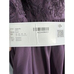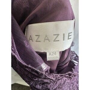 Elevate your formal attire with this stunning Azazie gown in a rich plum hue. Perfect for weddings, cocktail parties, and galas, this plus-size dress features an elegant ballgown style with a sleeveless design and delicate lace accents. The dress is beautifully lined and includes a side slit, empire waist/high waist for added comfort and style.