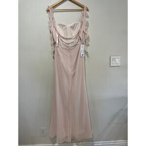 NWT Azazie x Barbie Sweetheart Pleated Ruffle Chiffon Mermaid Dress Blushing Pink US A0