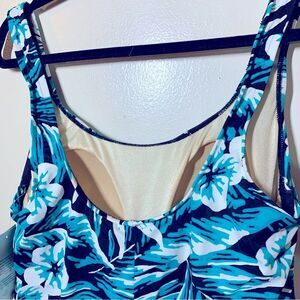 NWT Azul Swim Dress Swimsuit Padded Side Tie Tropical Print Sz 16 Gorgeous