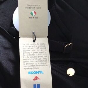 Stunning Swimsuit in alluring Black constructed with Jersey Lomellina Fabric that was Made in Italy. Underwire Support without padding, Goldtone hardware. Adjustable Straps