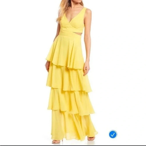 Brand new with tags. Gorgeous vibrant yellow cut out tiered maxi formal dress. Could be such a cute prom dress! Size 9/10.