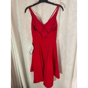 B. Darlin red fit and flare party dress size 5/6 NWT. Vibrant red party dress featuring a double strap v-neckline a flattering fitted bodice and a flowy high-low hem. Perfect for parties, date nights, or special occasions. Polyester blend for easy care. Non-smoking home: