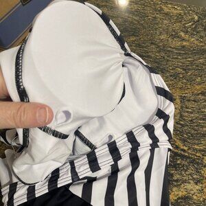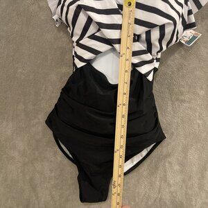 NWT B2Prity Womens Black & White Cutout Ruffle One-Piece Swimsuit Size Medium