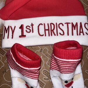 NWT BABY ESSENTIALS MY FIRST CHRISTMAS SANTA HAT AND SOCKS 0-6 Month Santa Xmas