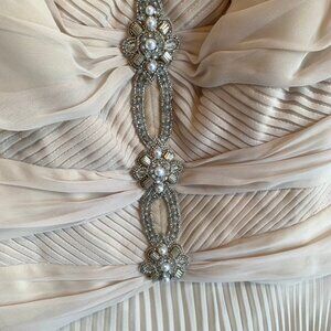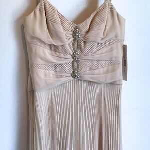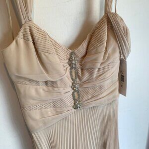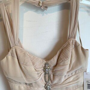 NWT BADGELY MISCHKA IVORY CHAMPANGE CHIFFON EVENING GOWN - SIZE 2