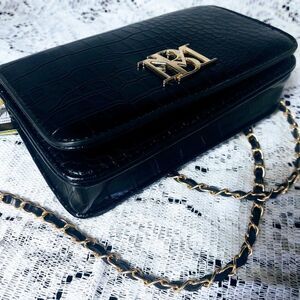 NWT BADGLEY MISCHKA BLACK VEGAN LEATHER CROC EMBOSSED CROSSBODY W/LOGO PLATE $99