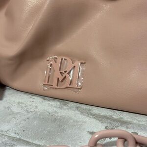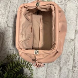 NWT BADGLEY MISCHKA Blush Pink Wrapped Frame Clutch Ruched Chain Vegan Leather