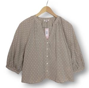 NWT BADGLEY MISCHKA COTTON PEASANT TOP IN SAND SWISS DOT SIZE XS
