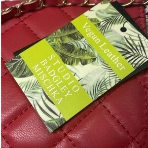 NWT Badgley Mischka Crossbody Bag Diamond Quilting RED Boxy Braided Chain Glamor