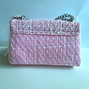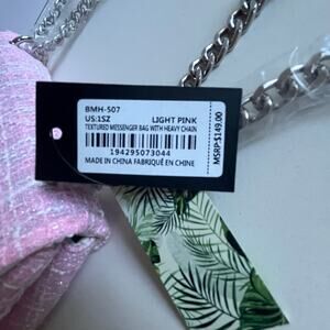 NWT BADGLEY MISCHKA Pink Tweed Shoulder Bag with Chain Straps