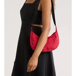 NWT BAGGU Cherry Red Small Nylon Crescent Bag