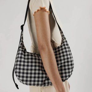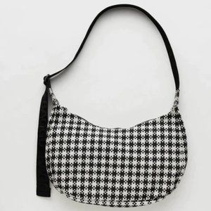 New with tag. Second picture taken by me. Color: Black & White Pixel Gingham Description from BAGGU: Practical doesn’t have to be boring. Our Medium Nylon Crescent Bag is effortlessly casual and large enough to carry more than just the essentials. Wear it slung over your shoulder or crossbody for a hands-free experience. Complete with two interior pockets that make it easy to stay organized. ● Adjustable tonal logo strap ● Measures 8" × 13 ¾" × 4" ● 37 ½" adjustable logo strap ● Recycled heavyweight nylon, recycled ripstop nylon lining ● Machine washable