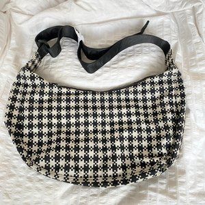 NWT BAGGU Crescent Bag Medium Black & White Pixel Gingham