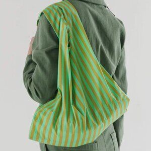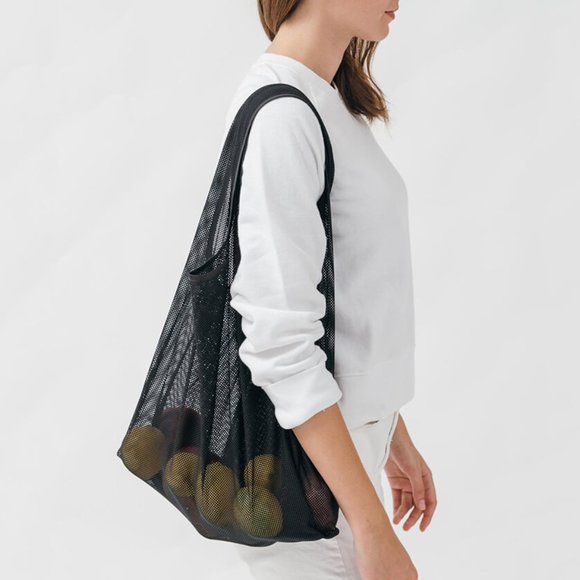 Say hello to the Mesh Baggu: a reusable bag made entirely from recycled plastic bottles. It's just as packable, versatile, and easy to take along as the Standard Baggu. Perfect for trips to the beach, water and sand slip right through.