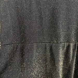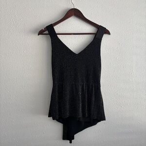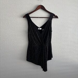 Get ready to shine at your next holiday event with this Bailey 44 black top! It's sleeveless with a faux wrap waist, creating a unique pleated detail in a stunning black and gold textured metallic material. Pair it with a black skirt and gold accessories for a glamorous look.