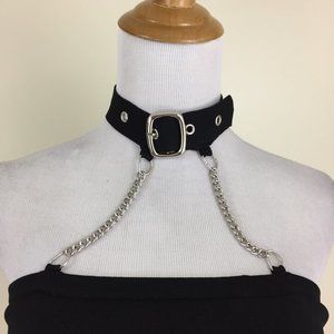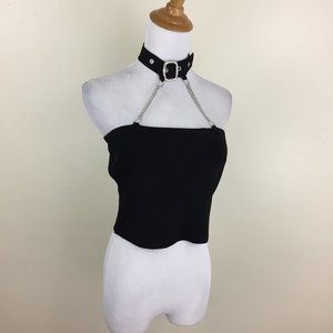 NWT BALBOA FASHION Black Silver Chains Adjustable Buckle Cropped Top