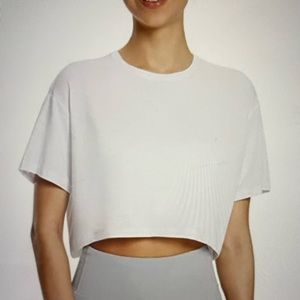 NWT! BALEAF Women's Pima Cotton Crop Workout Athletic T-Shirt - White