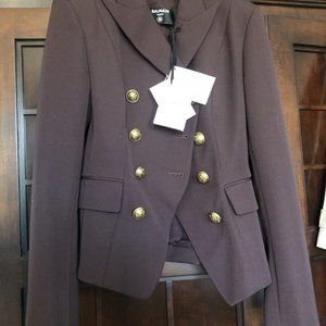 NWT BALMAIN Brown Grain De Poudre 8-Button Jacket