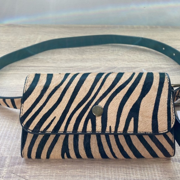 NWT BANANA REPUBLIC CALF HAIR NEUTRAL ZEBRA CROSSBODY BELT BAG