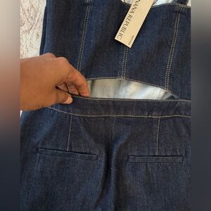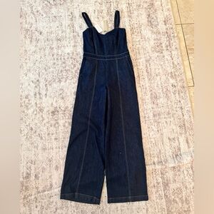 NWT BANANA REPUBLIC Dark Blue denim sweetheart neck wide leg 2P