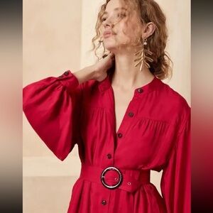 NWT! BANANA REPUBLIC RED SUNSET FLOUNCE HEM MINI DRESS - Size LARGE