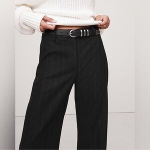 NWT! BANANA REPUBLIC WOMENS BLACK STRIPE HIGH-RISE WIDE-LEG FLARE FLANNEL PANT