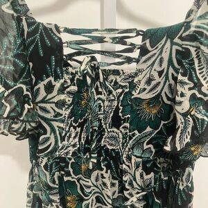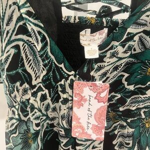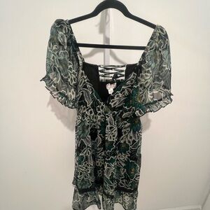 NWT / BAND OF THE FREE BLACK EMERALD FLORAL FLAIR SHORT SLEEVE DRESS