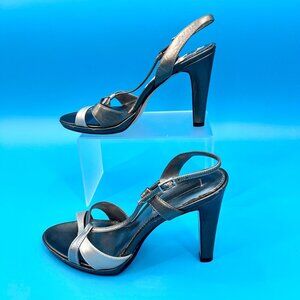 NWT BANDOLINO BDZOHRA METALLIC PEWTER & SILVER LEATHER STRAPPY SANDALS - 7.5M