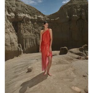 Introducing the "Marea Dress" in Cometa - With its ethereal silhouette, satin-like fabric, and ombre print, this one-shoulder maxi dress makes the perfect day-to-night look. Crafted sustainably, this high-end piece harmonizes style and comfort with its lightweight fabric, open back, and inner slip dress. Let our best seller dress elevate your summer evenings.