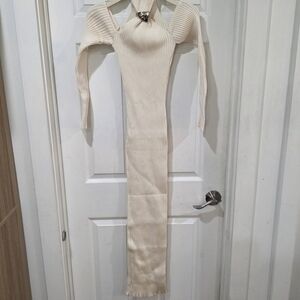 Introducing the "Yumiko Dress" in Coconut Cabana – this long sleeve, high-neck, off the shoulder maxi dress features intricate embellishments. The Baobab-shaped detail adds a sophisticated touch, creating a stylish and refined look.