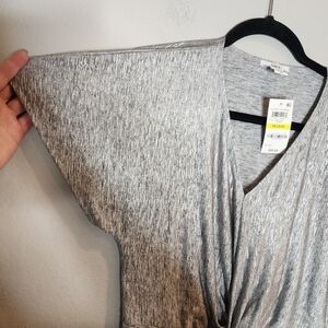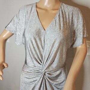 NWT BAR III Twist-Front Silver Metallic Stretchy Dress. Women's size medium