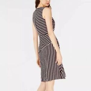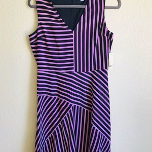 NWT BAR III Women Pink/Black V Neck Fit and Flare Stripe Dress Medium
