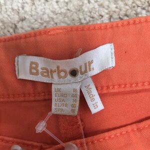 New! Barbour Size 14 harewood marigold shorts. Front one button zipper closure and front pockets.