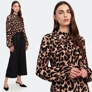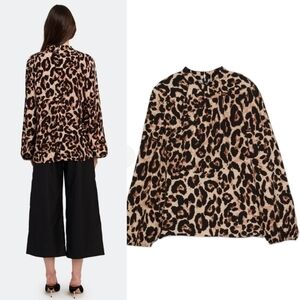 NWT BAUM UND PFERDGARTEN Mei Blouson Sleeve Leopard Print Top with flaw: fabric run on back right side below neckline (see last photo).