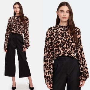NWT BAUM UND PFERDGARTEN Mei Blouson Sleeve Leopard Print Top Size 40 FR/10 US