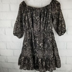 NWT. BB DAKOTA Juniors burnout off the shoulder dress. Size M. Keyhole front with tie detail. Elastic waist. Off the shoulder. Ruffle hem. Approximate measurements are pit to pit 20". Length 32". Sleeves 15".