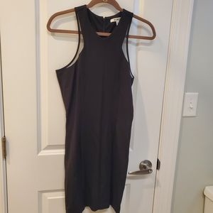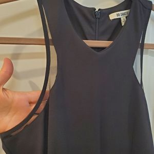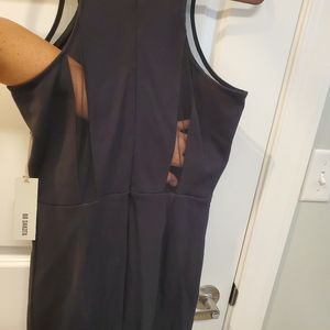 Flattering material, mesh along chest area and 2 mesh strips down back. sexy!