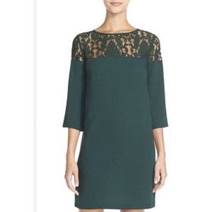 Look stunning and sophisticated in this beautiful BB Dakota lace dress. The knee-length piece comes in a lovely shade of green with a floral pattern that will make you shine at any party or cocktail event. The short-sleeve dress features a round neck and a zip closure that adds a touch of elegance to the outfit.